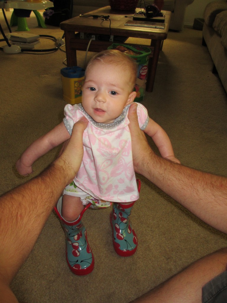 Mommy originally got these for some creative container gardening but couldn’t bring herself to turn them into containers for plants! They are now Jo’s first pair of rain boots! 🙂